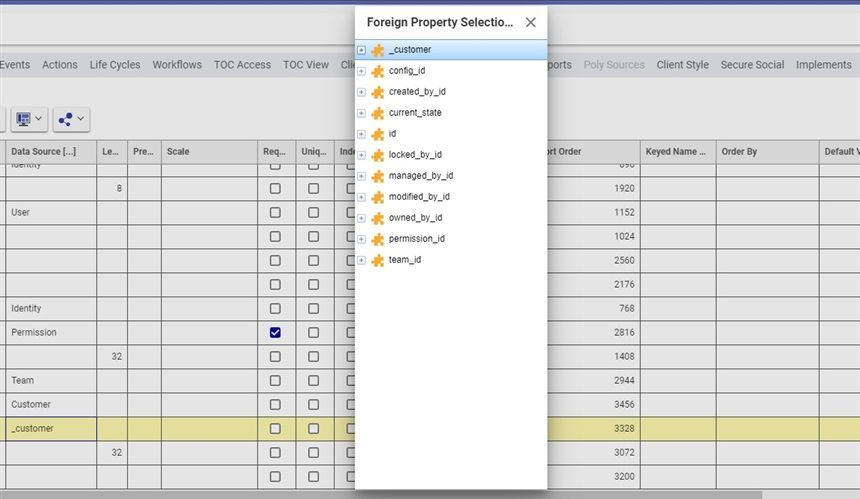 The simplest way to think of a foreign property is that it lets you reference another item, making a relationship between the two. The Foreign Property value, which isn't set directly, stores the property name of the other item. You might use a Foreign Property for example if you wanted to reference the address of the customer associated with a Purchase Order. Last time, we made an Item property to reference Customer: if you need to revisit how to do that, take a look at this article. To use foreign properties of Customer, use the following steps: