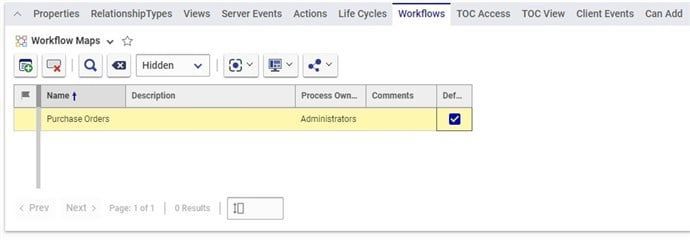 On its own, a Workflow map isn’t going to be usable. It sits there, disconnected from your processes. To fix that, lets connect it to an ItemType. Here, we assume you’ve followed along with the Fundamentals series and have a Purchase Order ItemType to connect to, but you can use another ItemType in your instance if you prefer.