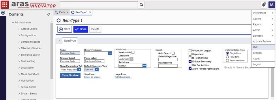 This article will cover the creation of new ItemTypes, which is important for administrators as it allows Aras Innovator to be customized to your business needs. Today, we’re going to create a simple ItemType for Purchase Orders, but this same process can be used to create a wide variety of ItemTypes. We'll make the Purchase Orders, then set permissions for them and create a form so that users can add details. To follow along, you’ll need to be an administrator on your Aras Innovator instance. The screenshots and specific steps in this article were made using Aras Innovator Version 12 Service Pack 2, and while the steps should be similar for any Service Pack, you may notice small changes.