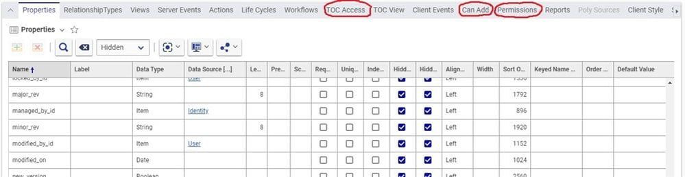 If we open our table of contents and scroll down to the bottom where new ItemTypes default to, we don’t see them. That’s because we haven’t configured who is allowed to use them yet. For that, go back to our Purchase Order ItemType. In the tabs below, there are three that we need to make changes to: TOC Access, Can Add, and Permissions. Lets start with the TOC Access tab.