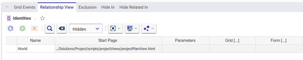 The Project Tree’s Relationship View is set for the World Identity, so all users will see the Relationship View. The Start Page value is set to an HTML file so when the Project Plan Tab is opened, a custom HTML page is loaded instead of the standard relationship grid, as shown below.
