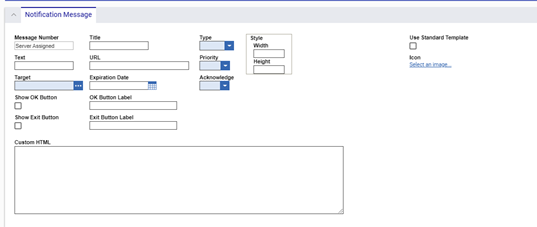 - The Acknowledge field allows you to toggle between Once or Always. Once indicates that when users click the OK button on a message it will be removed from their message queue and the event will be recorded for later viewing by an administrator. Always indicates the message will always appear in the user’s message queue until it expires, or the administrator deletes the notification.