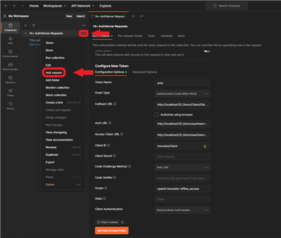 - Give the new workspace a name, such as 14+ AuthServer Requests