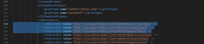 - Copy the first 3 default <redirectUri></redirectUri> tags: