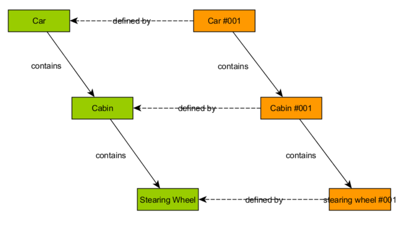 Here is the intended configuration. We start from the native part and part BOM to create a similar structure with every instance having a "definition" reference to their original part.
