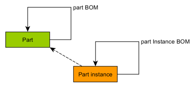 Then you need to create an instance of a part BOM, the relationship between two parts. In the data model I called this link "InstancedPartBOM".
