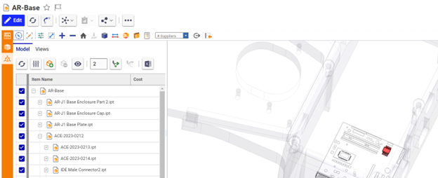 This series will go over a simple example of how to customize a view of CAD Assembly based on data from the related Part BOM structure. For the example we’ll just color parts differently based on the make/buy property of the related Part. We’ll use an example from ACE 2023, creating the view you see below with buy parts showing up in red, with the rest of the assembly being transparent.