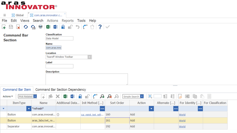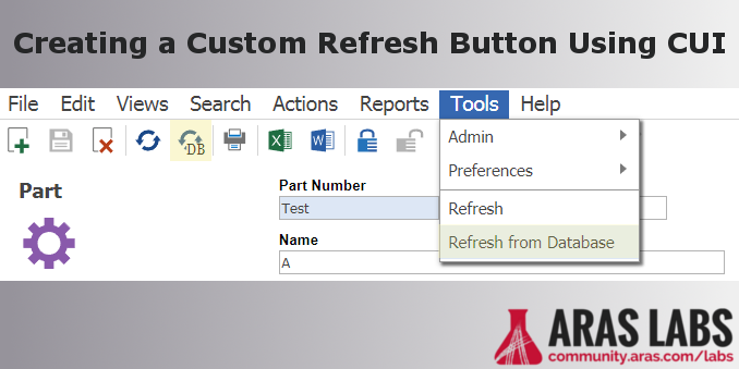 With the introduction of CUI in Aras Innovator 11.0 SP7, you can now manage the appearance and functionality of the User Interface directly through the Aras Innovator client. In this post, we will learn how to use CUI to add a custom refresh button to item tearoff windows. This custom button will allow users to refresh an item based on the information stored in the database.