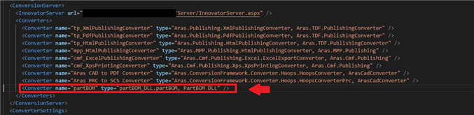 - This will be in between the <ConversionServer> <Converters> tags as shown below: