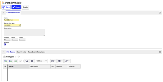 - Next create the Conversion Rule and call it Part BOM Rule setting the Converter Type as Part BOM. Let’s also set up the Cutoff value as 1 so that if we are testing and there are failures the Conversion Server does not run excessively in the background.
