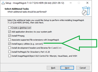 ImageMagic: For the installation, the only trick is to tick a box to deploy the utilities that we will use