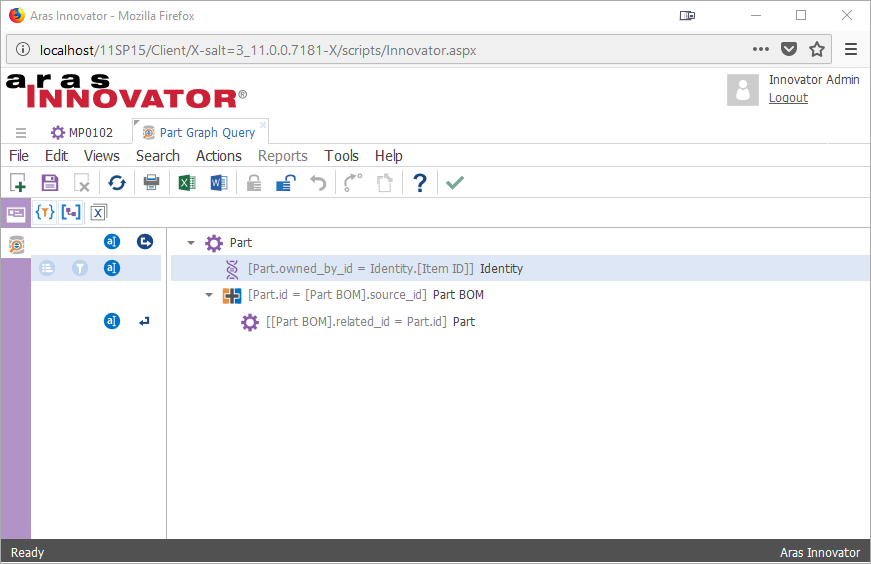 Now we'll be able to view Parts and their related data using Aras Innovator's default graph settings. In the next section we'll explore the features of the graph viewer.
