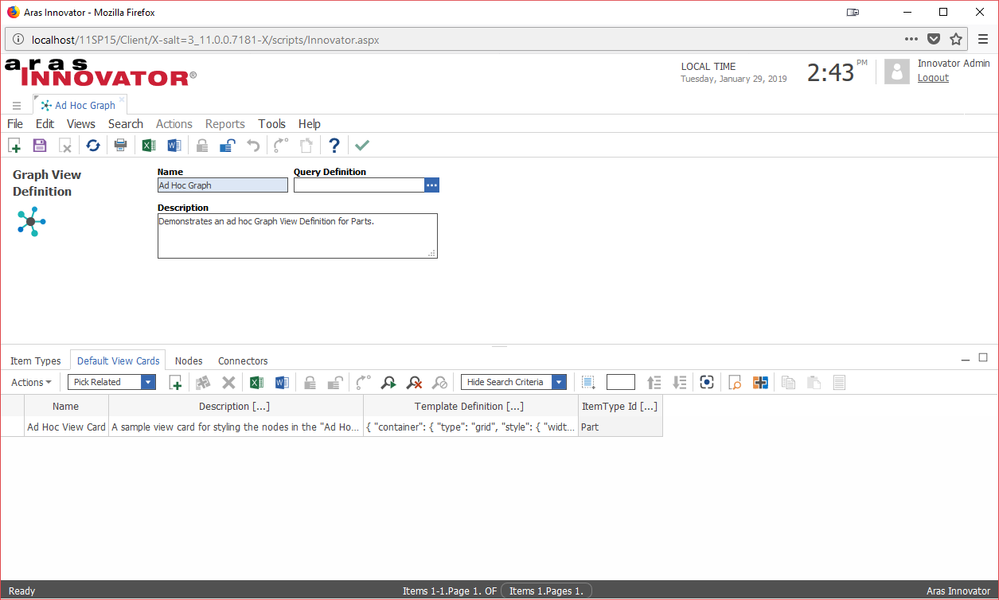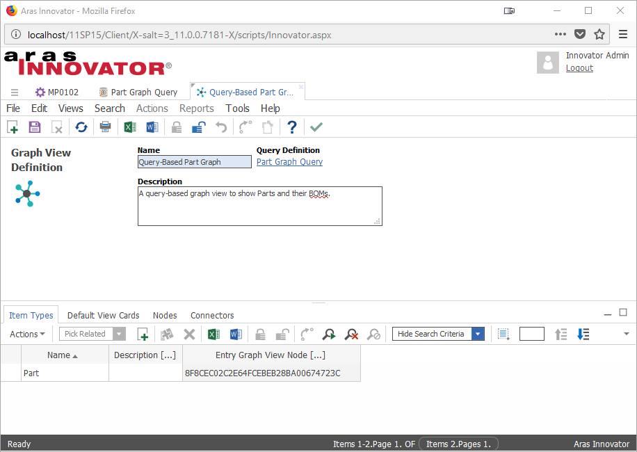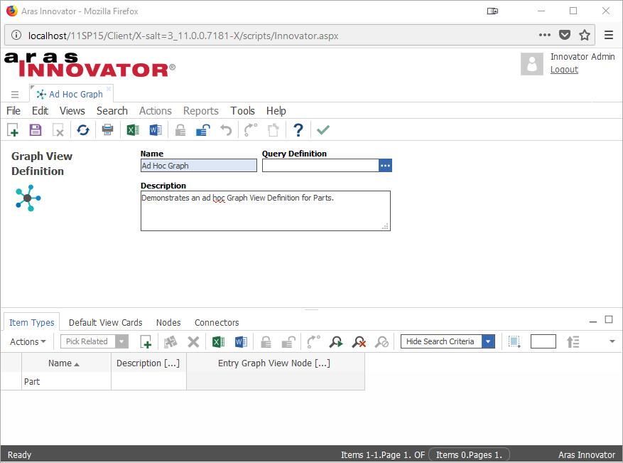 This section outlines the two approaches to creating a Graph View in Aras Innovator - Ad Hoc and Query-based.
