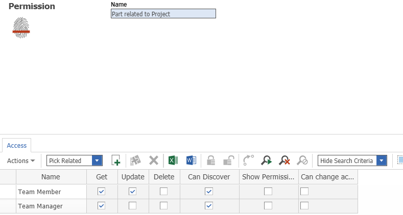 Now that your DAC Definition is configured and active, it should be in effect within your system. Now when you create projects associated with teams, the parts attached to that project will have your newly defined permission.