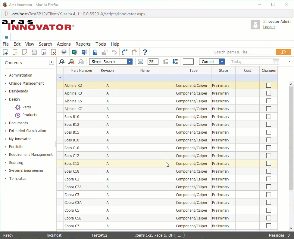 Warning! This demonstration modifies a file in the Aras Innovator code tree. Do not perform these changes in a live production environment. Always back up your code tree before applying a patch or modifying files. This ensures you can quickly and easily revert any changes.