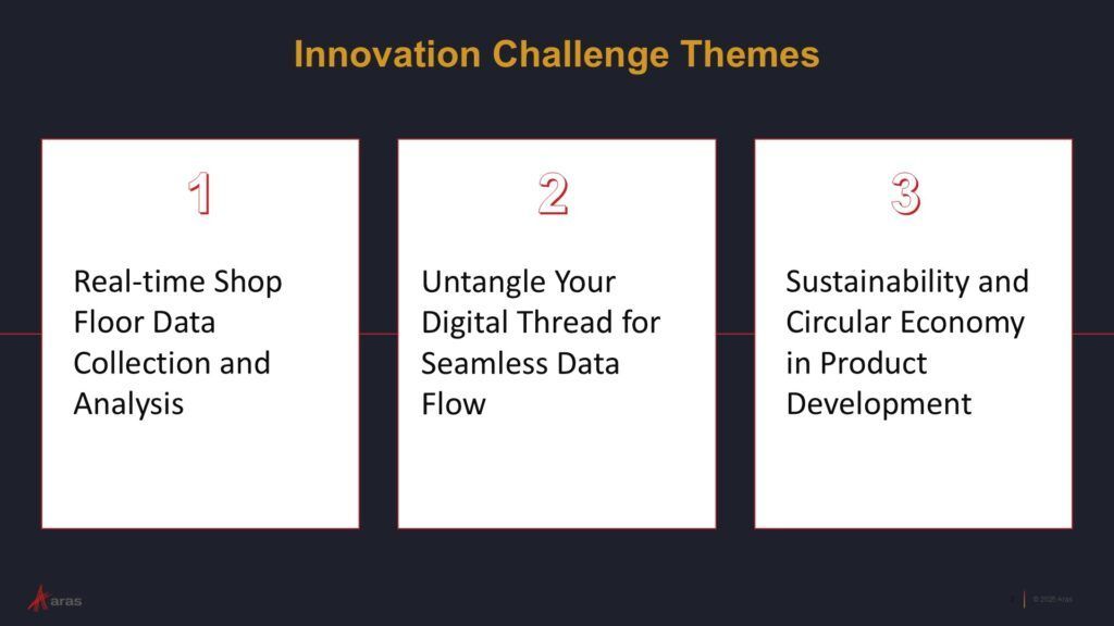 Inspired by hackathons and the traditional "rapid-fire demos" at ACE, the Innovation Challenge provided community members an opportunity to show off the creative and impactful solutions they're building on the Aras Innovator® platform. Participants submitted projects in one of three topic areas: real-time shop floor data, digital thread, or sustainability.