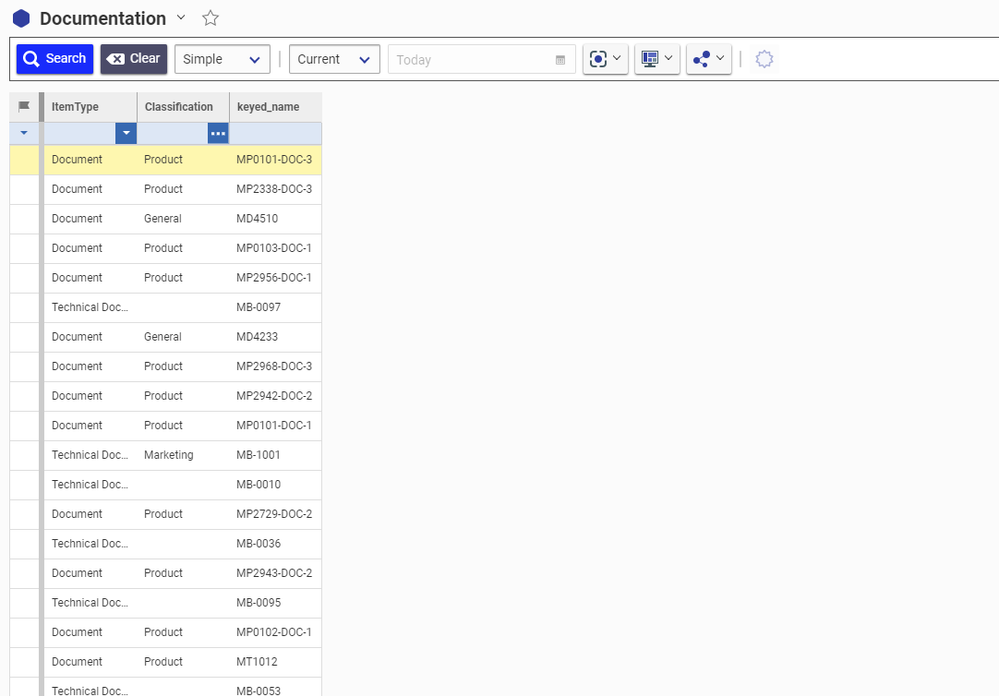 After adding these changes, we can see that it is much easier now to search and view all of the documents within our Aras Innovator instance.