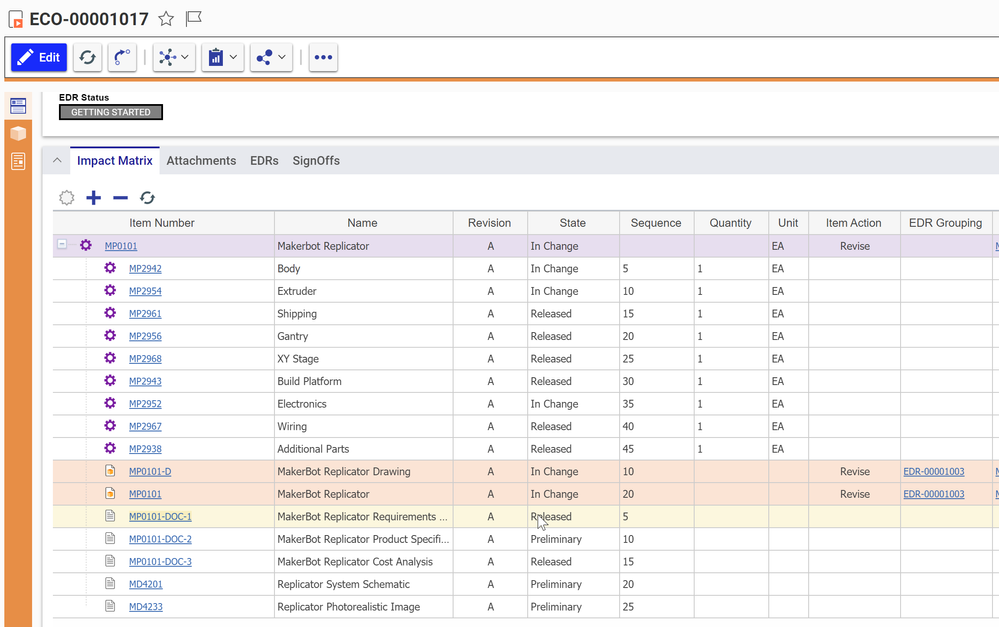 On top of this, PE enables change management, allowing you to keep proper versioning on your parts and assemblies. This can be achieved through many different mechanisms, with the primary one being Engineering Change Orders.