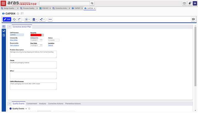 While preventing any potential issues is important, it's equally important to have a system in place to correct any issues that are found after your product is released and in use. QMS ships with a Corrective Action Plan (CAP) ItemType for tracking just this kind of information.