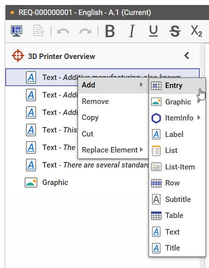 Many of the standard Tech Doc elements are now at your disposal. These can be inserted directly into your individual requirements, which can then be embedded in your Requirement documents. Formatting and spacing should be preserved when embedding.