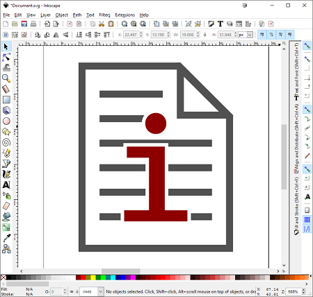 To edit the SVG icon, you will need a vector editing tool. There are paid tools available, such as Adobe Illustrator, as well as many open source or free tools like Inkscape or Vectr. We use Inkscape in the screenshots below.