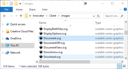 Once you've determined which image you want to use as a base for your custom icon, we need to make a working copy. This will prevent any accidental changes to the original SVG file. Copy the base icon SVG file into the customer folder in the code tree at [Install Path]InnovatorClientcustomer and give it a new name.