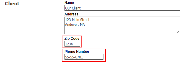 The Zip Code only has 4 digits and the Phone Number only has 8.