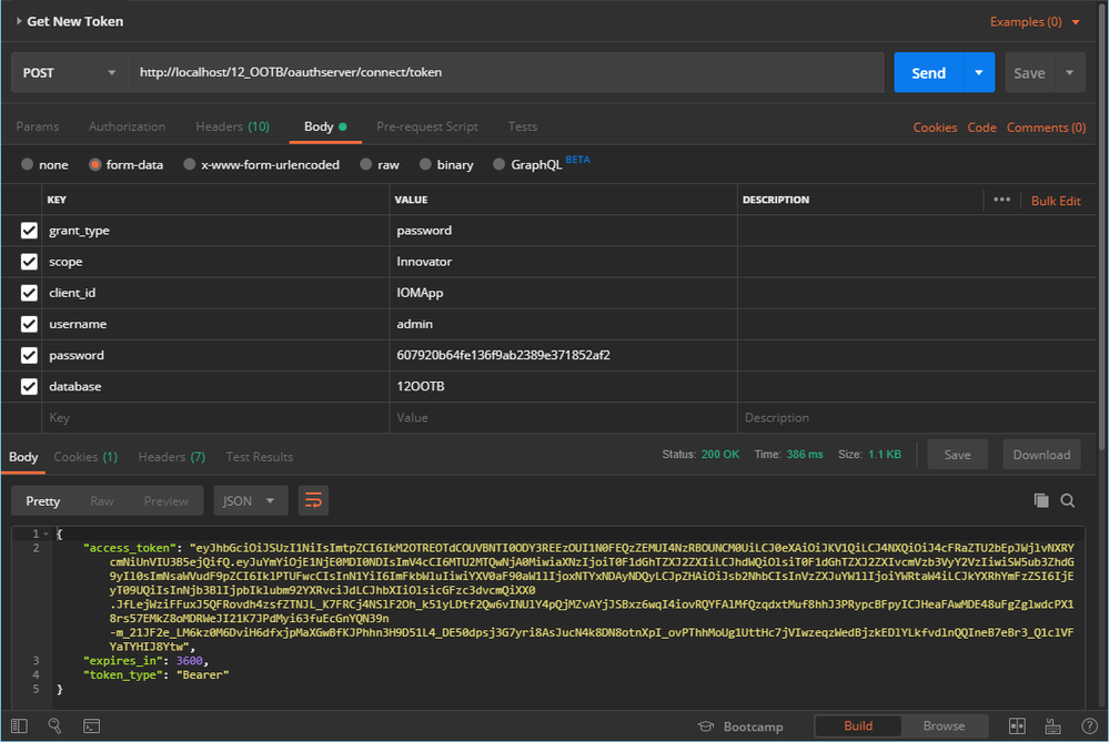 We'll use OAuth to authenticate the HTTP requests in this example, so the first thing we need to do is get a new token from Innovator's OAuth server. We've covered using OAuth tokens with Aras Innovator in a previous blog post, so I won't dive into the details here. Basically, you'll need a POST request with the following information passed in the body: