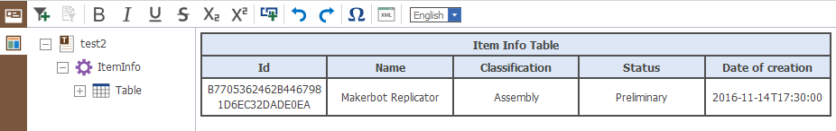While it's great that this data is being populated dynamically based on the user's selection, this particular table may not fit every use case where we need to display item data in a document. Instead, we can define a new content generator method that queries the data we need and adds the necessary child elements to the ItemInfo element.