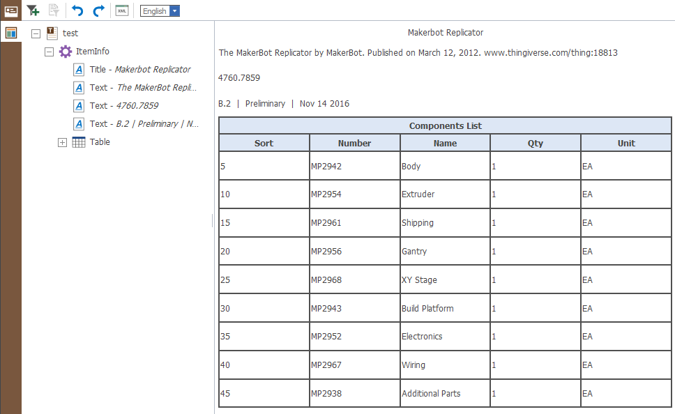 Content generators are server-side methods that create content when a specific schema element is initialized. These methods can be used to generate dynamic content, such as the table of data displayed in a default ItemInfo element. The first example below will demonstrate how we can use a content generator to dynamically display an assembly's BOM data and connect the document to your digital thread. The second example shows how to include a technical document's metadata into the document's content with a custom content generator. Lastly, the final example will demonstrate how a content generator can be used to create a default behavior - like automatically adding a child text element to every new table cell or list-item.