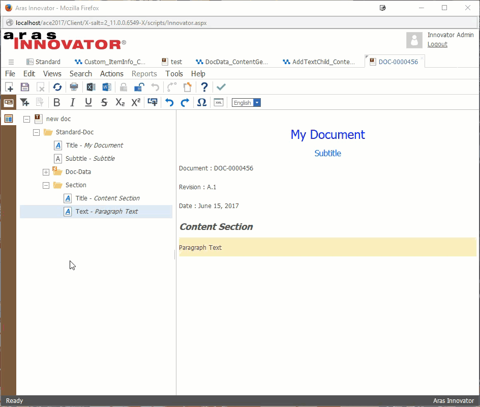 Another application of content generators and custom elements is to display metadata from a technical document within the tech doc itself. In this example we look at a quick and simple way to automate a common requirement - including the document's number, revision, and last modified date in the document content.