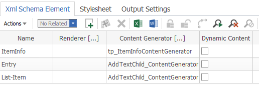 Add two new rows to the Xml Schema Element tab on your DocumentType - one for Entry and one for List-Item. Set AddTextChild_ContentGenerator as the content generator for both and save the DocumentType.
