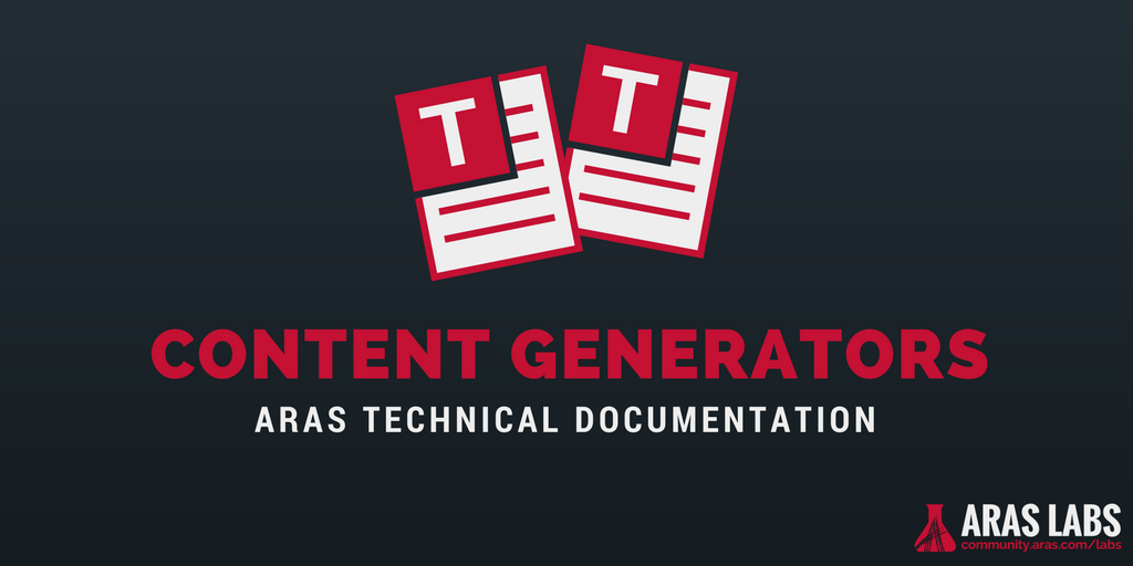 Note: It is important to keep the MethodTemplateName comment at the top of the method, as Aras uses this to determine which method template should be used to execute the Method item's code. The content generator will not work if this comment is not the first line in the file.
