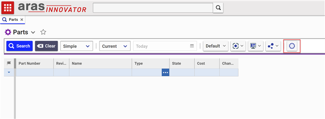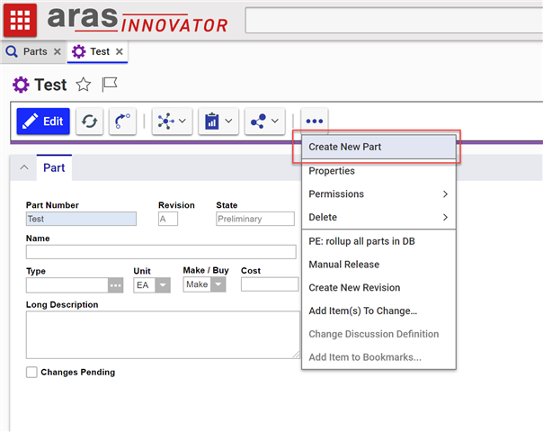 Once we have this change saved, we can open up a new Part search grid and test out our changes by trying to add a new Part. Because of the nature of CUI Commands, it shouldn't matter what button or action you use to create the new Part.