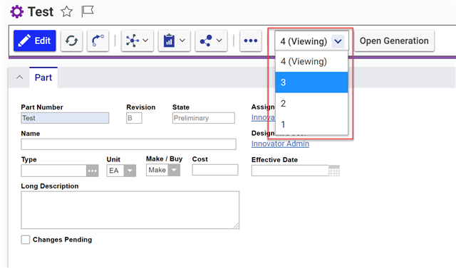 Now we're ready to test it out. If we open up a Part that has multiple generations, we should see that we can select any of the older generations.