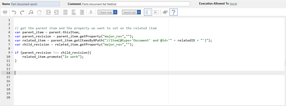 I tried coding the method as you said. I wrote it for the relationship Parts-Document. Basically if I do a revision of my part i want to promote my document back to 'In work' in order to trigger the workflow.