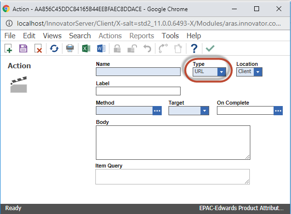 The URL action type is likely a remnant from an older version of Innovator and was kept in for legacy purposes. In recent versions, it doesn't have any specific functionality like the other types of Actions do, so you can ignore it.