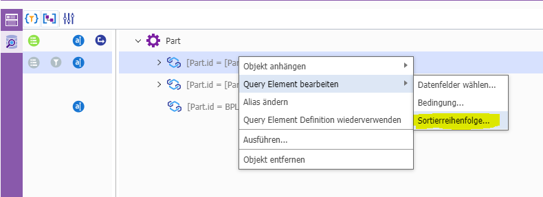 Translation: Right click -> Edit Query Element -> Sorting (or similar text).