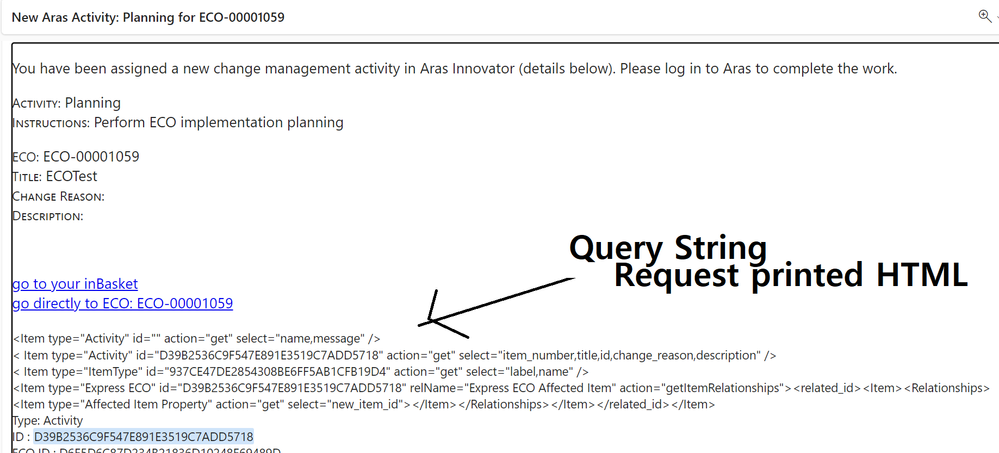 No, Let me rephrase my question. In the email notification I am able to print the <Query_string> in HTML_BODY. Meaning, I am able to see what this dynamic Query_string parameter framed as REQUEST in the incoming email. But after API render, email body consumes, xPath and mapped the RESPONSE fields inside <p> tag.