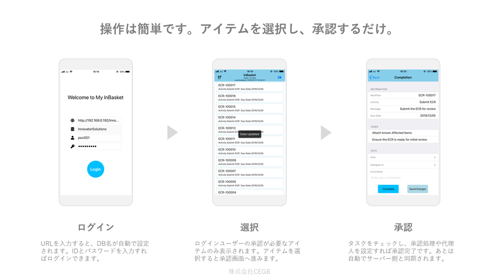 株式会社CEGBは、モバイル端末で承認処理を行えるアプリを開発しました。