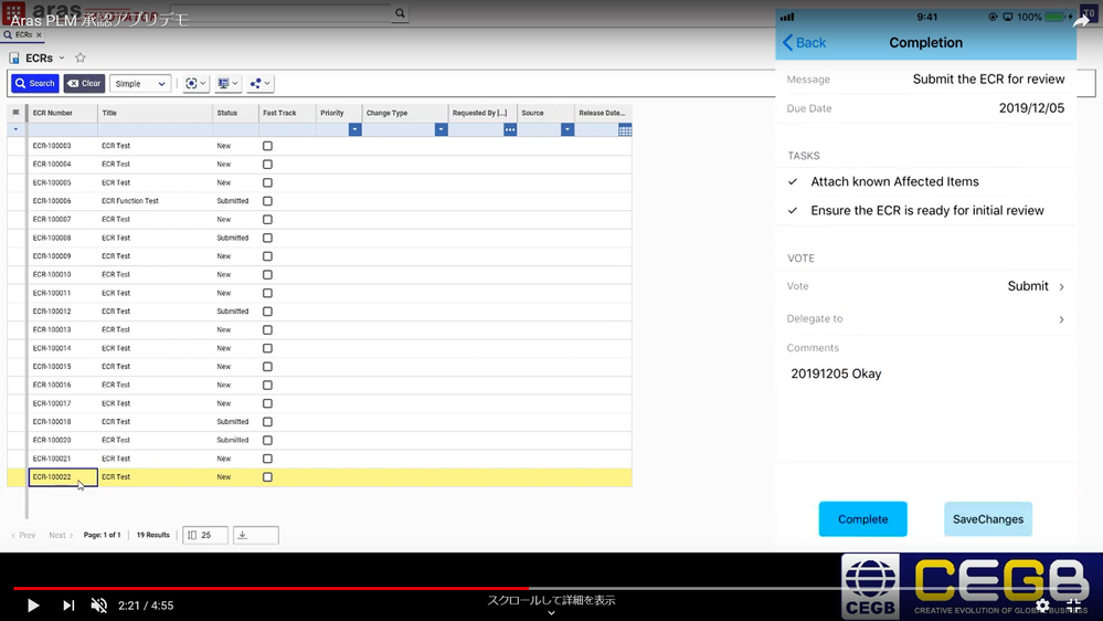 ArasPLMモバイル承認アプリ(Aras PLM Mobile Workflow App)