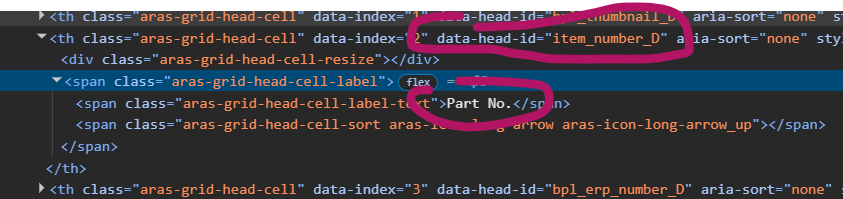 I assume the use case is not easy to solve. You could probably replace the OOTB "Search" CUI button used for Parts with a custom one and do some additional JS tricks to change the labels. In the browser debugger you can see how property name and label are connected in the final table.