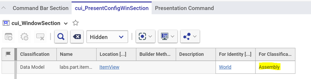 However , On Creation of the Part Item when the user selects the Classification Assembly , the CUI changes are not available, only when the user closes the Part and opens it again does the "Part BOM" relationship become visible.