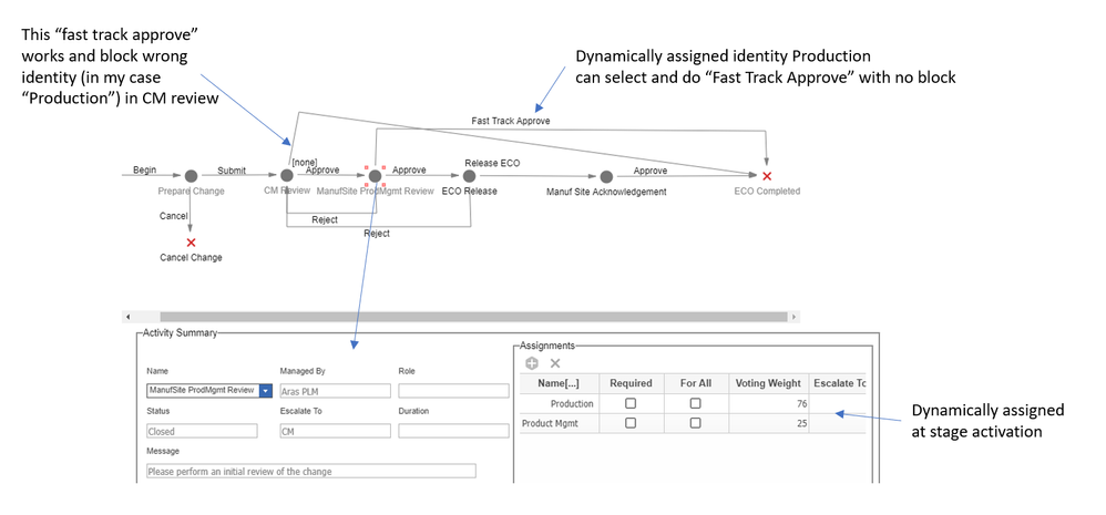 However, if I on another stage add a "fast track approve", have assignee's directly in that stage (no method to add them), then your code blocks the user to go that path if not correct identity