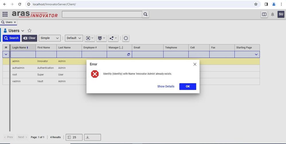 When you create user, it will create an identity in the backend. When you try to do save as of user, it will try to create identity with same name which is unique property. You can click create new user button to create a user or use AML scripts to create user if you want to load more users.