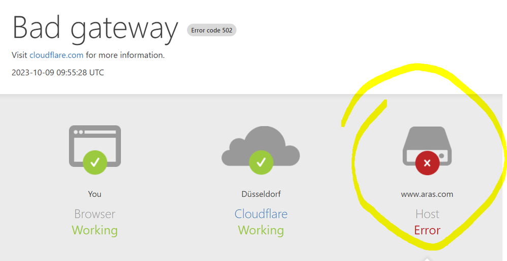 So I assume some service is down on Aras side.