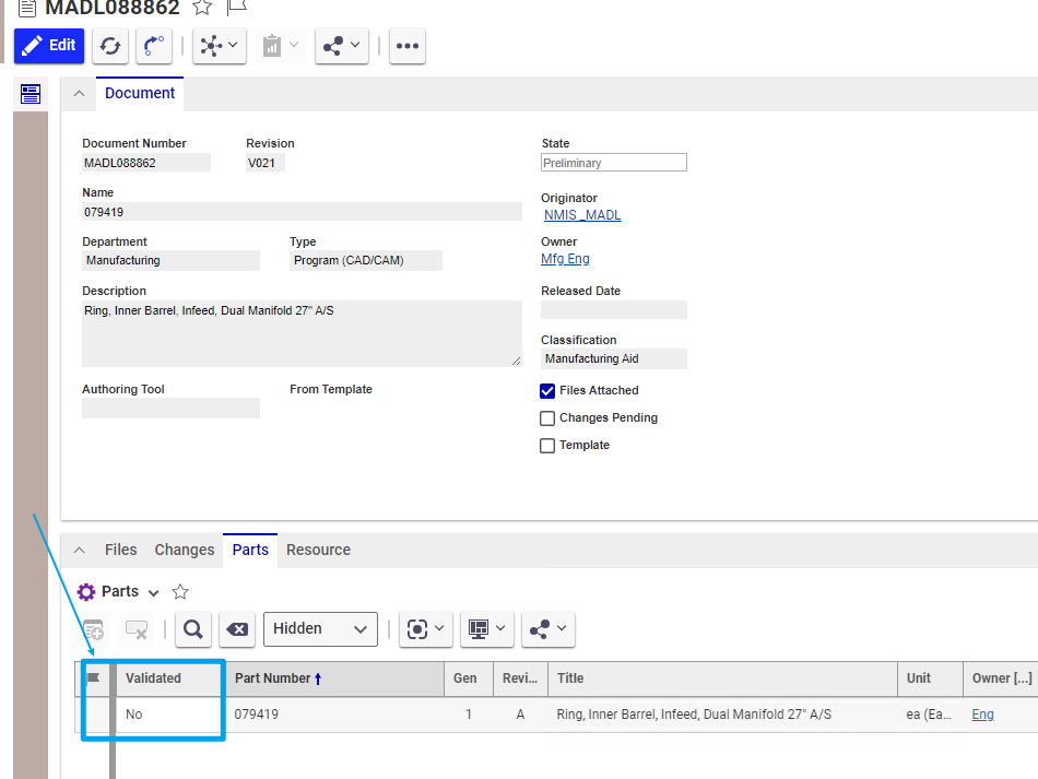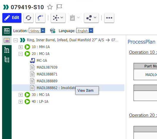 Some of these documents under an operation are "invalidated". The documents are assigned "invalidated" status from Document-->Part when the "valid" option is changed to "No"(screenshot below). The user has the ability to right click on the any of the documents and select "view item" (picture below) to open the document container (screenshot below). I need this "view item" functionality to work for a certain identity when the document is "invalid"