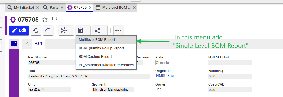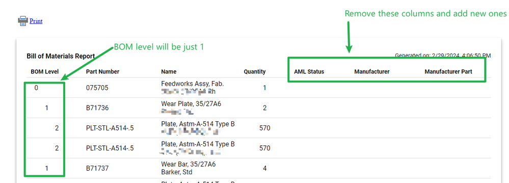 I need to make a new BOM form where the BOM level is only 1 and I need to remove some of the columns that appear in the default BOM form.