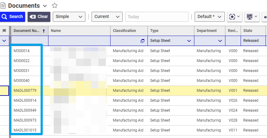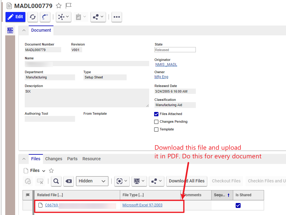 Under Documents, Type= Setup Sheet, State = Released, are documents that are in excel and they have to be converted to pdf
