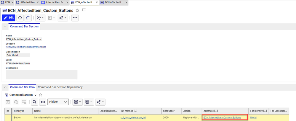 For the ECN Item, I want to disable the "Delete ECN Affected Item" button when the ECN state is (In Review or Released state).